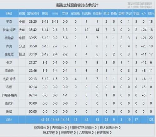 接下来看看今天的比赛,上半场大部分时间,俄克拉荷马城蓝都压制着混音队。直到上半场最后时刻,混音队才反超。半场战罢,混音队62-58领先4分。杨瀚森投篮6中2,罚球3中3,拿到10分2板2助1帽。其中3次罚球得到6分。